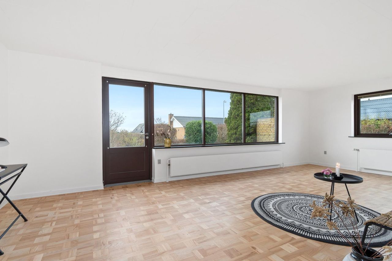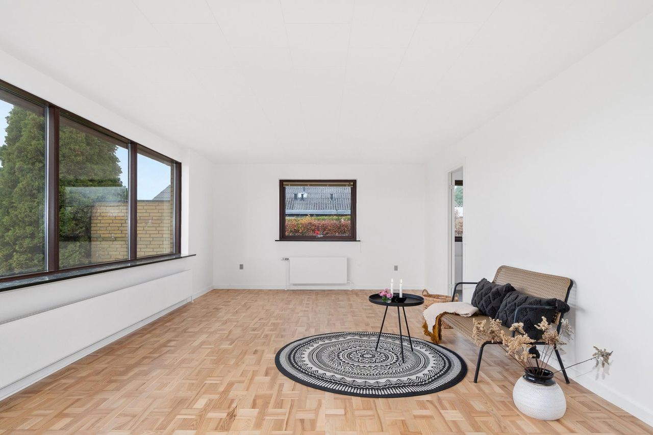 Den rummelige stue er perfekt til hyggelige familiefester eller stille aftener med en god bog. De store vinduer lader det naturlige lys strømme ind, og skaber en varm atmosfære.