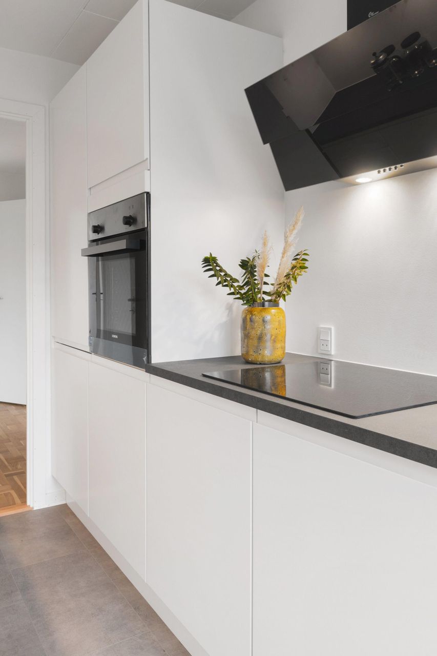 Køkkenet er moderne og funktionelt med gode opbevaringsmuligheder og alt i hårde hvidevarer. Det åbne køkken-alrum giver mulighed for at være social, mens du tilbereder lækre måltider.